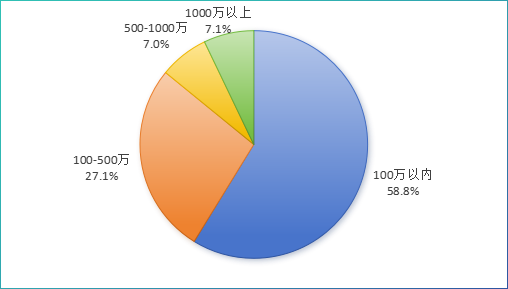 2025年新注册调味品制造企业注册资本占比最高为100万以内的企业,占比为58.8%。