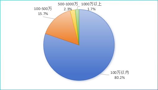 2025年新注册调味品流通企业注册资本占比最高为100万以内,占比80.2%。